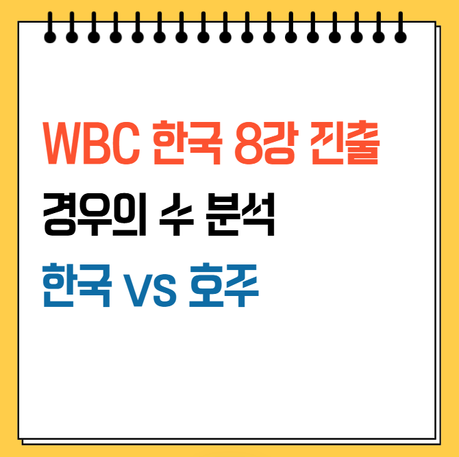| 일본 승리 + 한국 3실점 이상 | WBC 한국 8강 진출 어려움 |